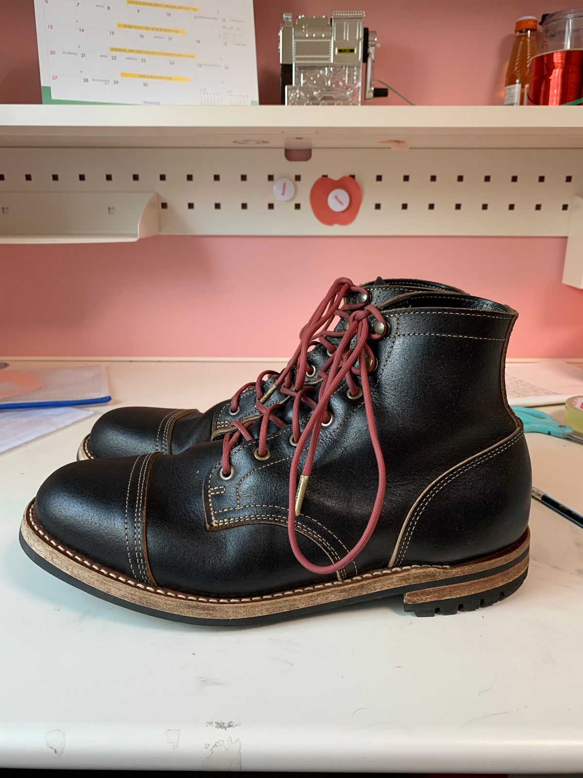 Photo by eggieman on April 4, 2025 of the Truman Cap Toe Boot in Horween Black Waxed Flesh.